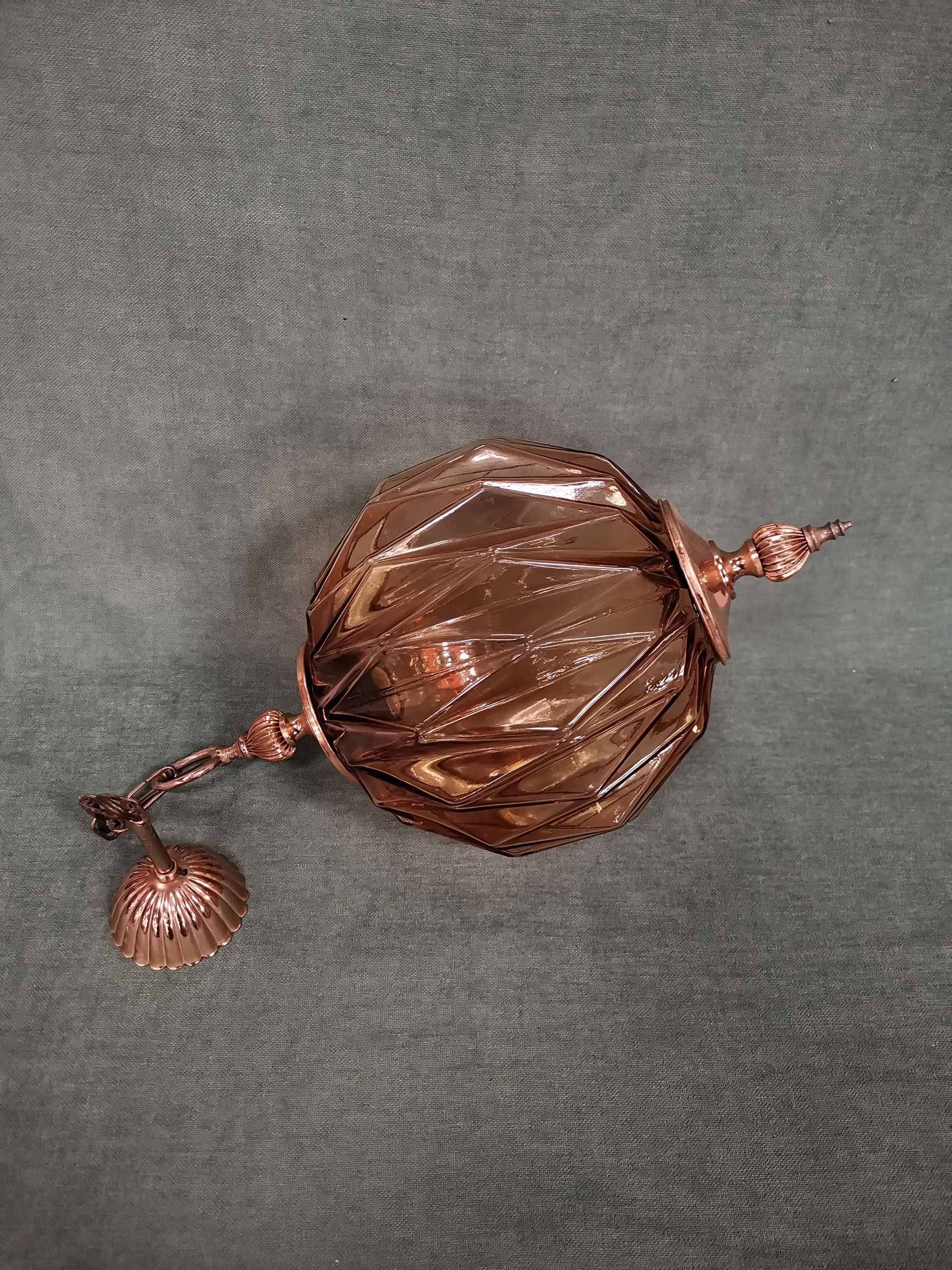 Suspension très originale en verre ancien et éléments décoratifs mordorés.