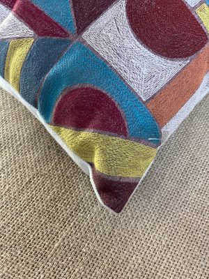 Coussin en coton brodé à motif ethnique multicolore de la maison Thévenon, 50cm