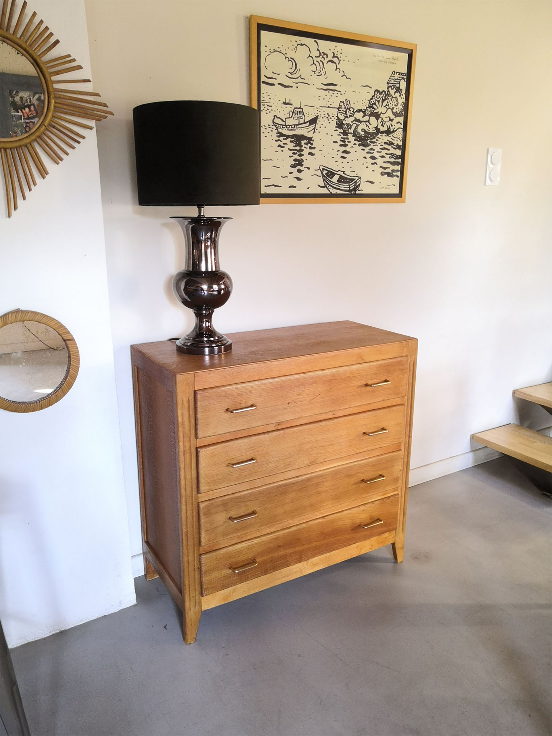 [ VENDU !!! ] Cette commode, grand classique des années 50,donne du cachet à un appartement récent et est garnie de jolis miroirs et de plantes grasses.