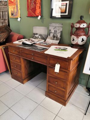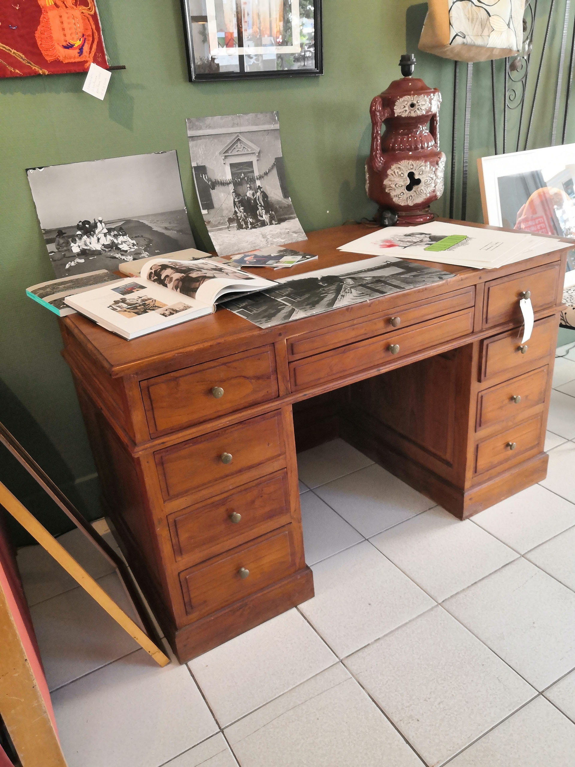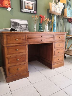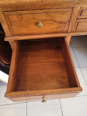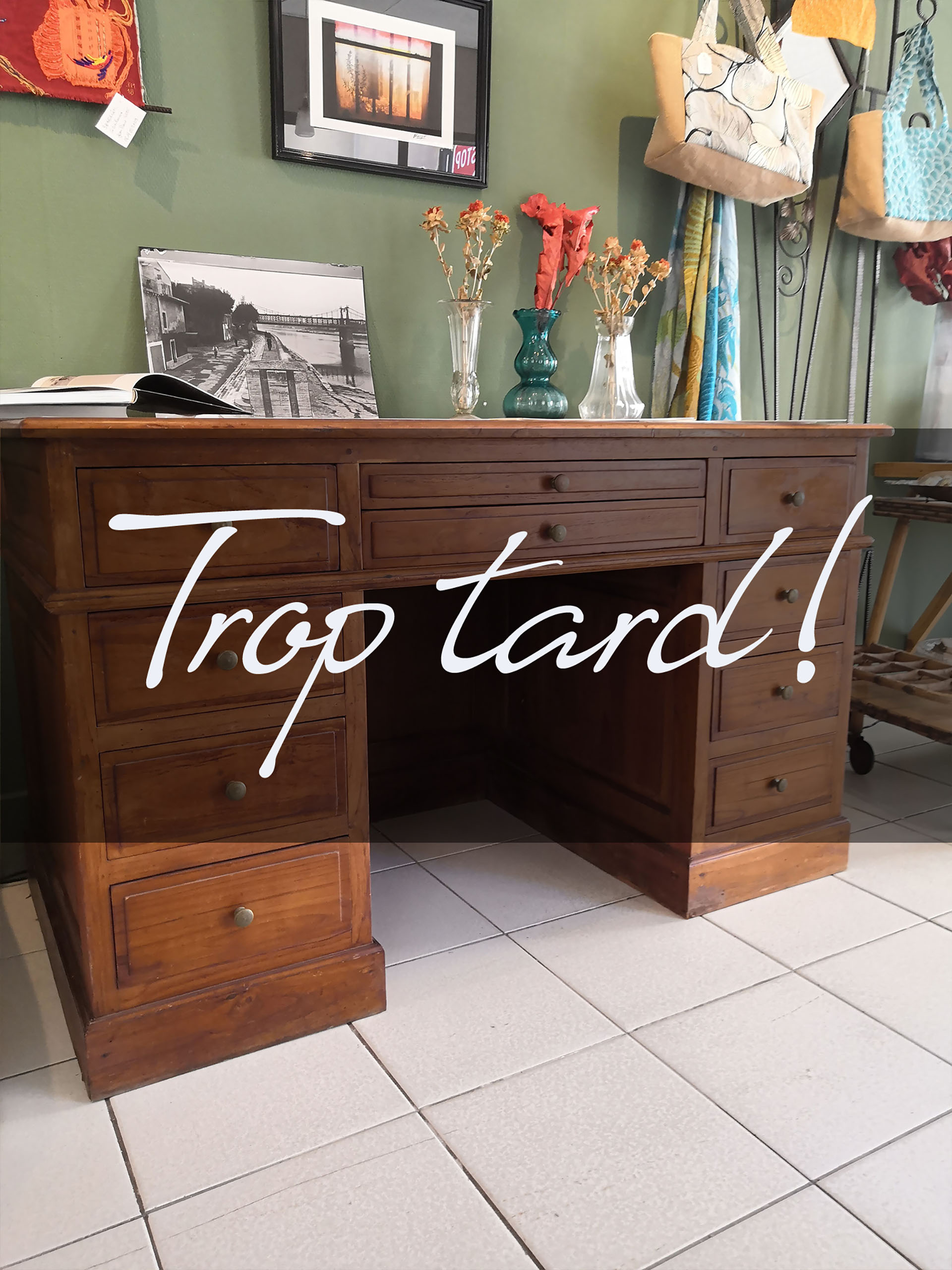 [ VENDU !!! ] Ce grand bureau en châtaignier aux faux airs de meuble de métier a déjà trouvé son propriétaire, une écrivaine dont la créativité a décuplé depuis.