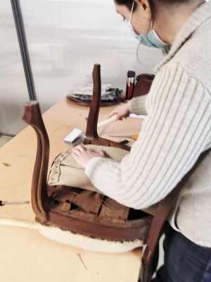 Du dégarnissage à la finition d’un fauteuil bridge, venez (re)découvrir le temps d’un week-end les techniques de la tapisserie d’ameublement. Que vous soyez débutant.e ou plus expérimenté.e, je vous accompagnerai dans votre création. Le coût du stage inclut le fauteuil bridge, les matériaux de garniture et le prêt des outils. Apportez seulement votre bonne humeur et 1,5 mètre du tissu d’ameublement qui vous plait.