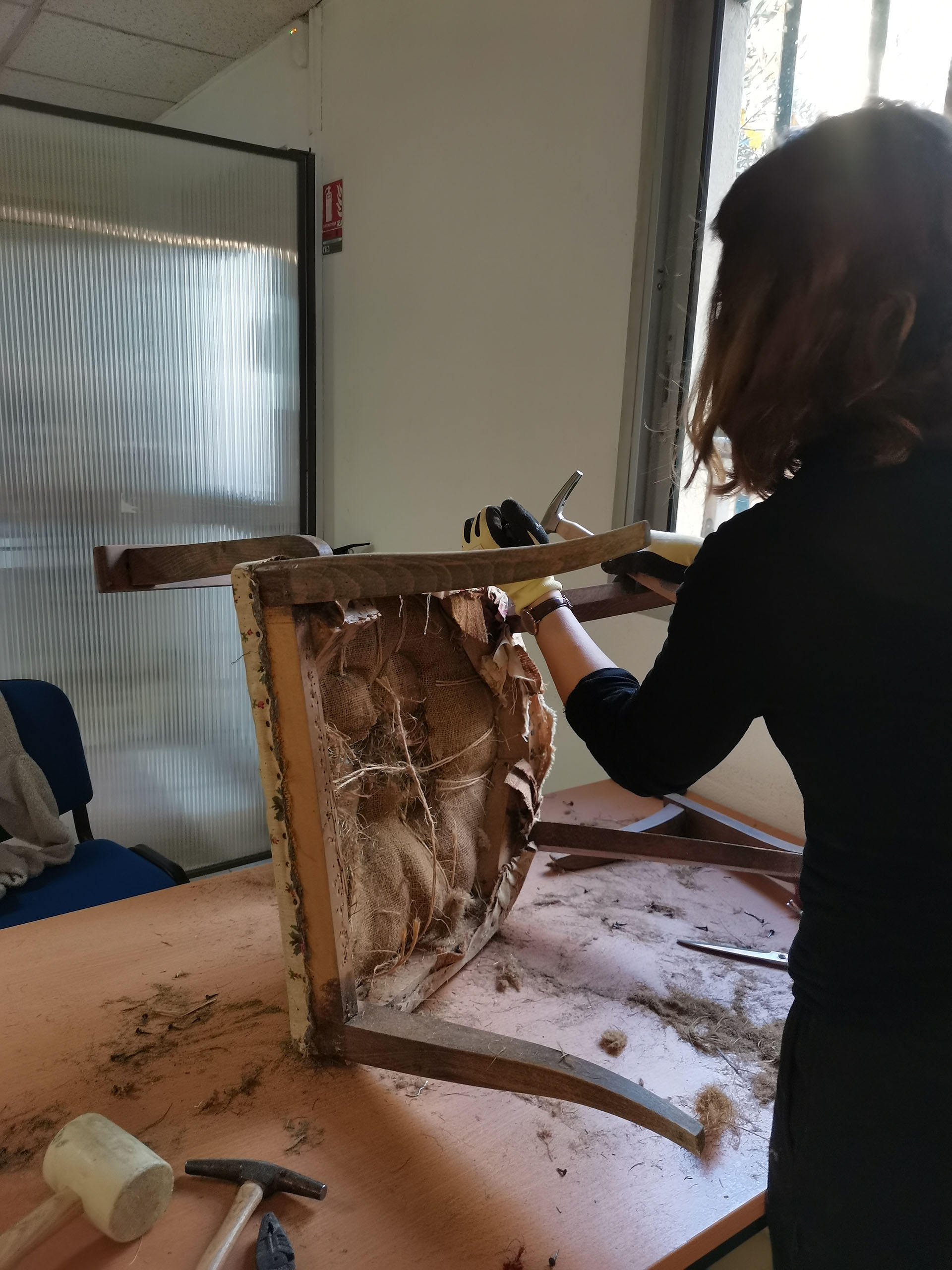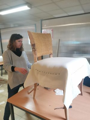 Du dégarnissage à la finition d’un fauteuil bridge, venez (re)découvrir le temps d’un week-end les techniques de la tapisserie d’ameublement. Que vous soyez débutant.e ou plus expérimenté.e, je vous accompagnerai dans votre création. Le coût du stage inclut le fauteuil bridge, les matériaux de garniture et le prêt des outils. Apportez seulement votre bonne humeur et 1,5 mètre du tissu d’ameublement qui vous plaît.