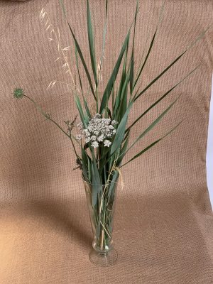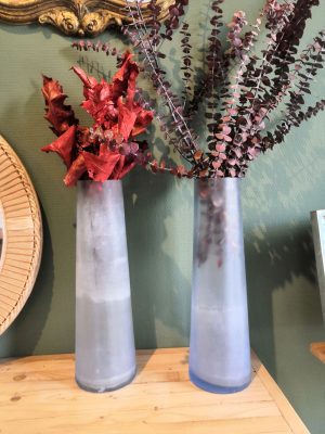 Paire de vases coniques longiformes en verre dépoli légèrement gris bleuté