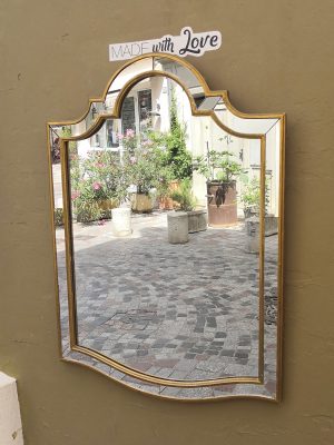 Miroir style XIXème avec cadre en bois sculpté et moulures dorées